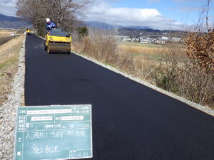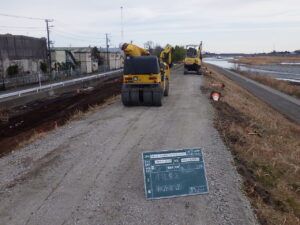 工事概要:工事延長 L=1,400m 歩道舗装工 A=3,613m2 取り付け部舗装工 A= 66m2
