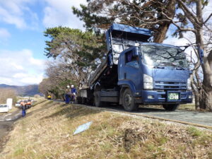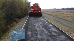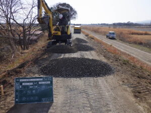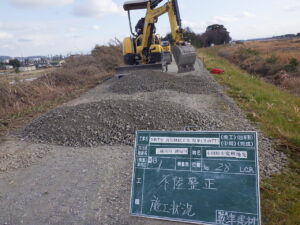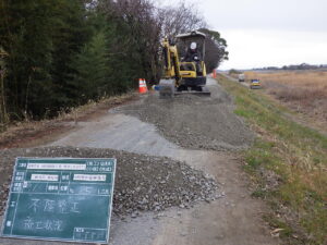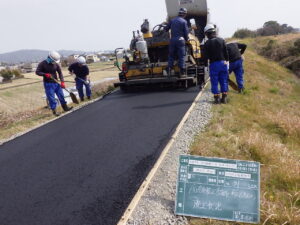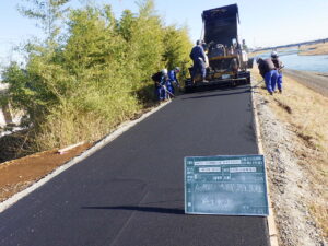 工事概要:工事延長 L=1,400m 歩道舗装工 A=3,613m2 取り付け部舗装工 A= 66m2