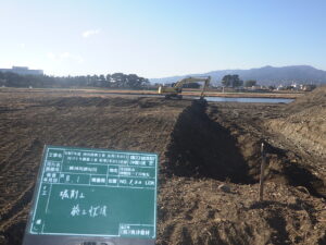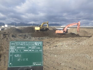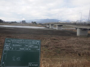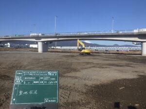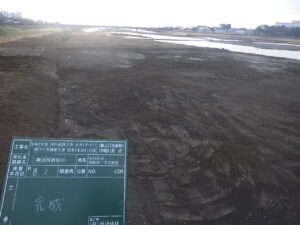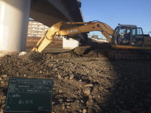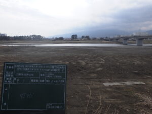工事概要:河床掘削工 L=120m 幅員W=85.2m 河川土工 V=11,377㎥ 発生土処理工 V=1,970㎥